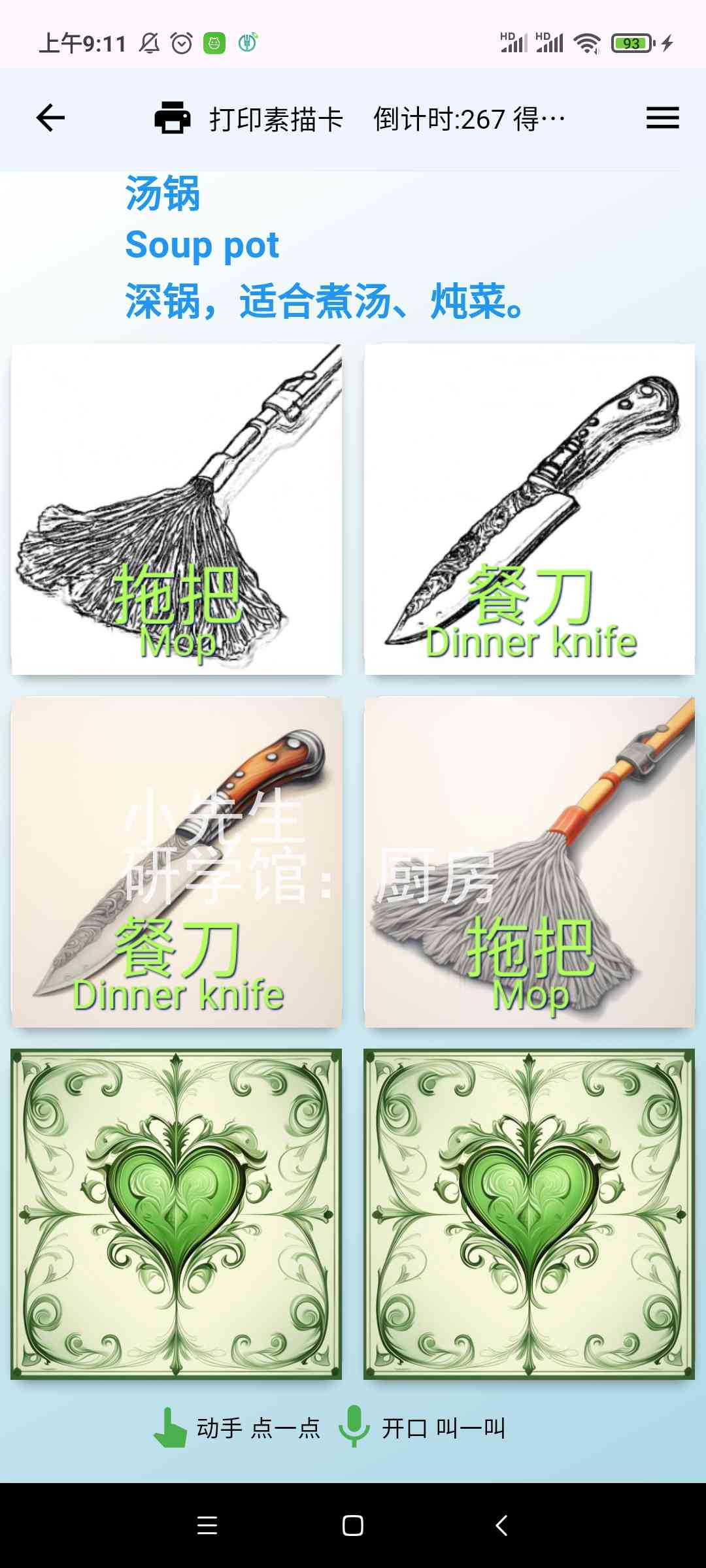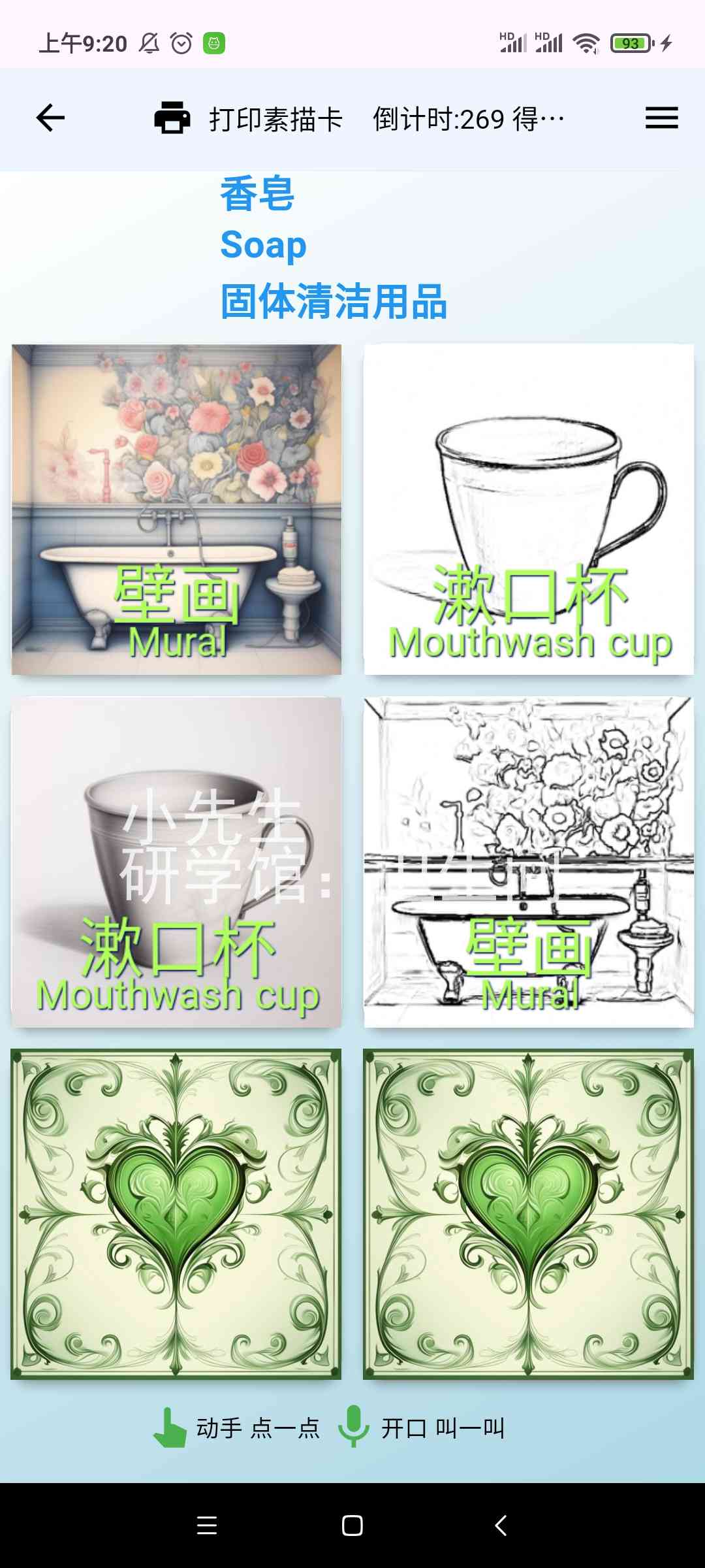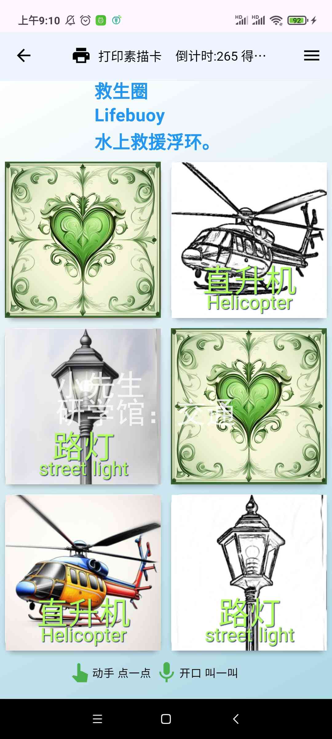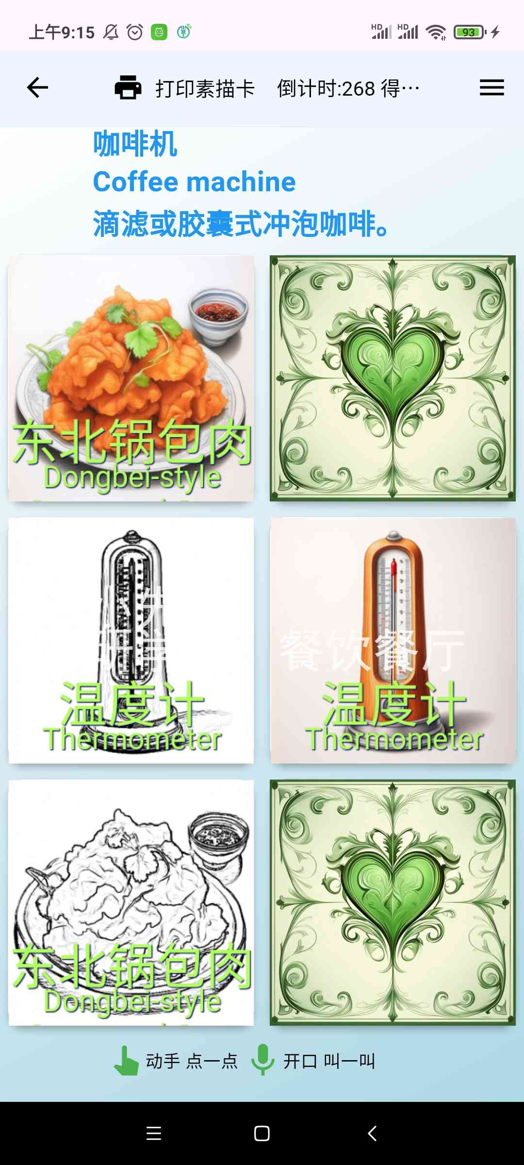 描红打印输出[需另买热敏票据打印机],或市面一些识字卡片,用手机摄像头照一照,玩一玩,学一学。