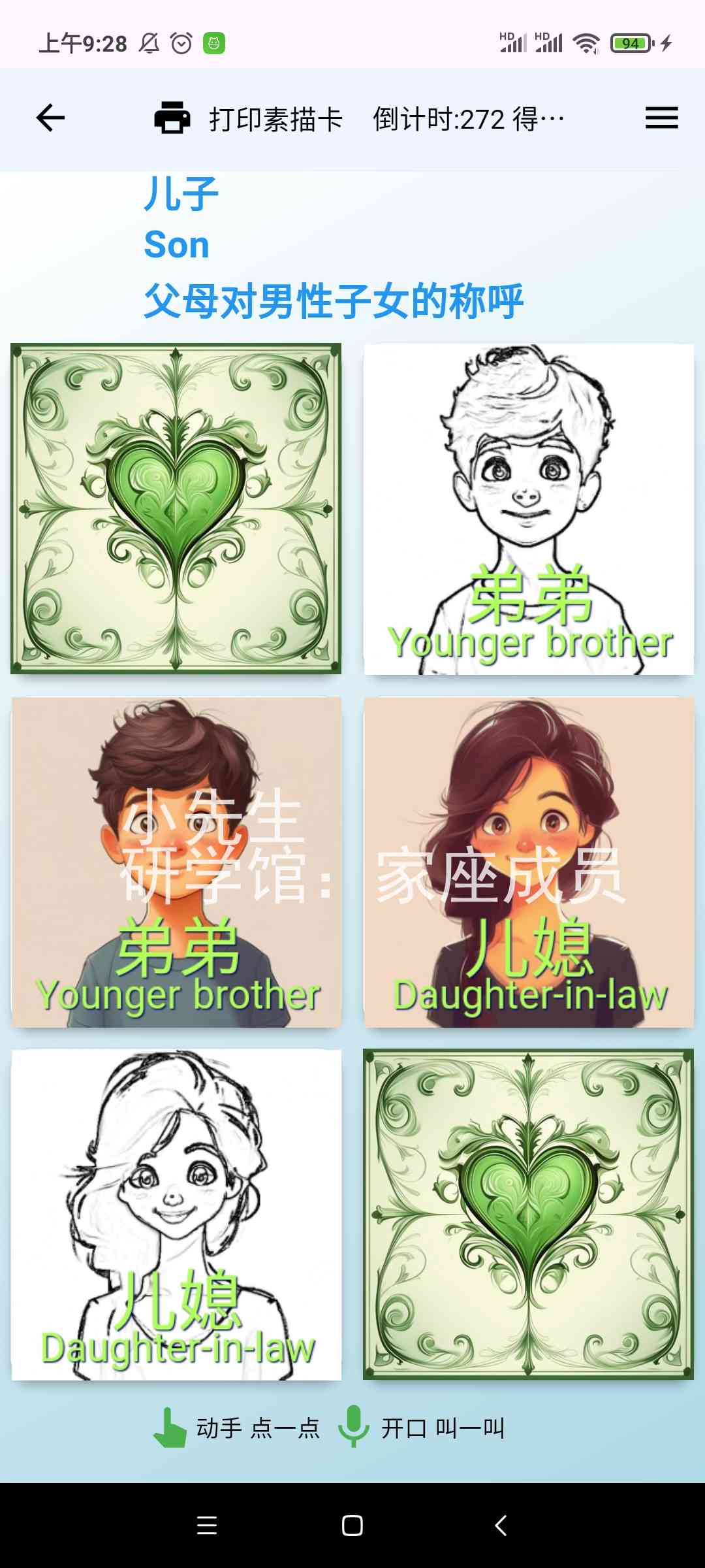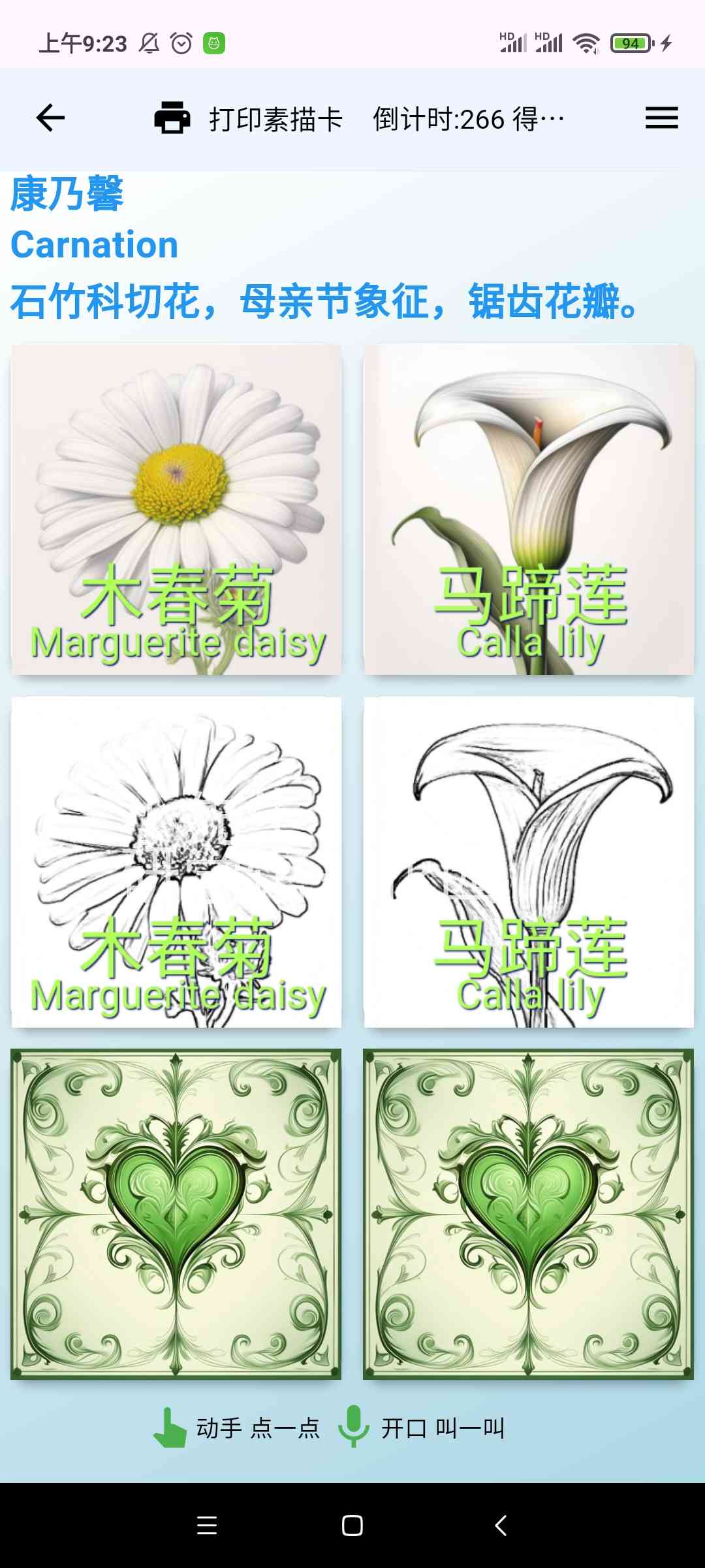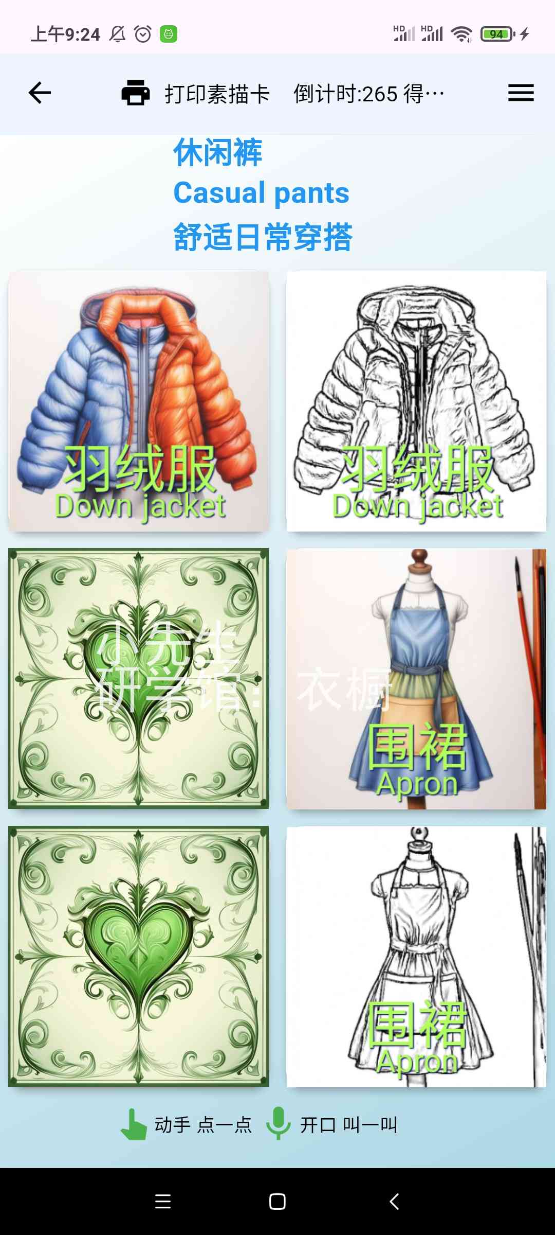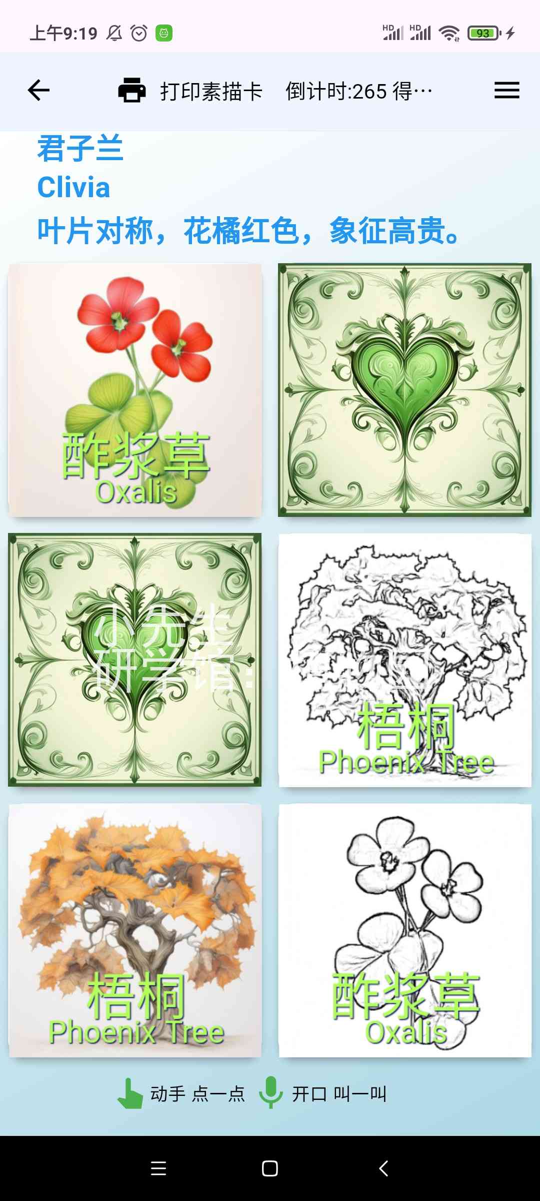 描红打印输出[需另买热敏票据打印机],或市面一些识字卡片,用手机摄像头照一照,玩一玩,学一学。
