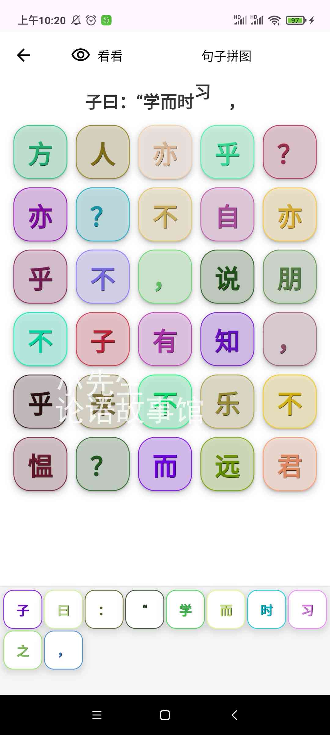 512个句子拼图游戏,宝宝动手拖拽拼字图块读玩《论语》每一章字句;